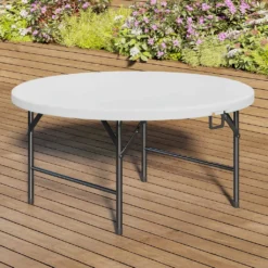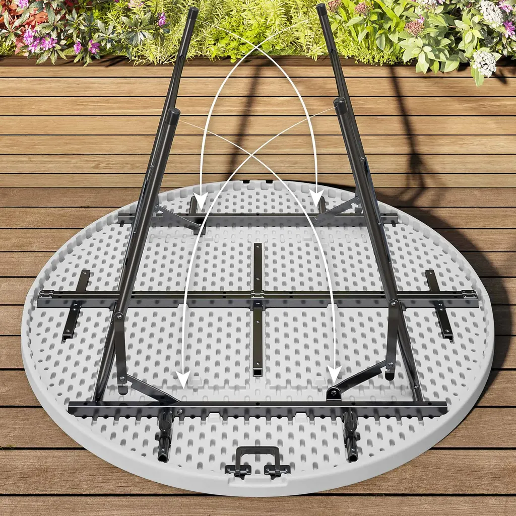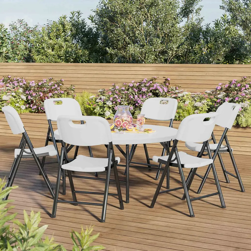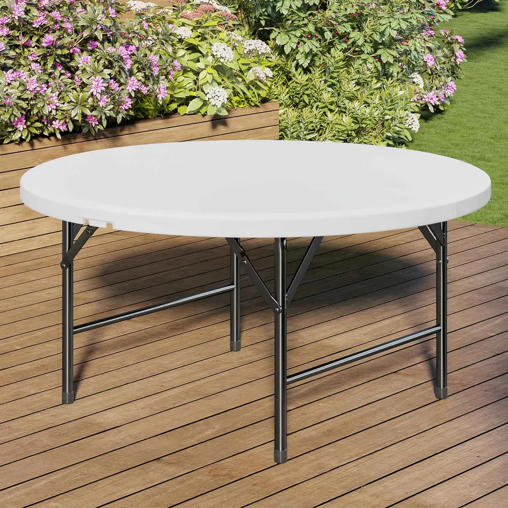 2er-Set MIO | Partytisch | Ø 122 Cm | Weiß | Klappbar | Party Klapptisch, Buffettisch, Banketttisch