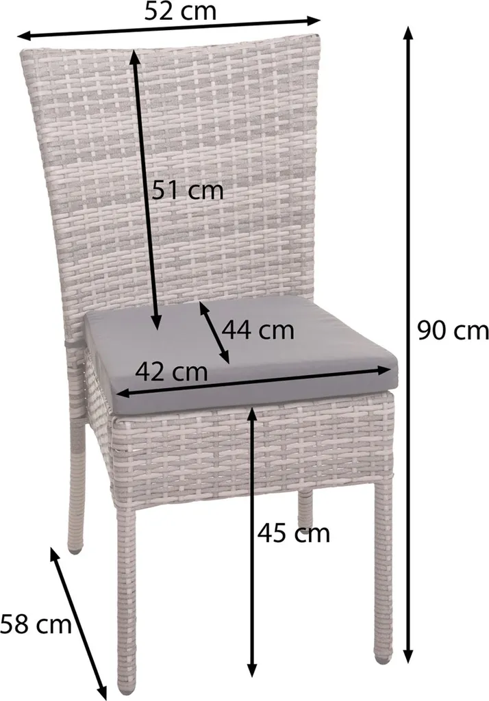 | Zusätzliche Varianten | 2er-Set Poly-Rattan Stuhl HWC-G19, Balkonstuhl Gartenstuhl, stapelbar braun, Kissen creme, 2er-Set Poly-Rattan Stuhl MCW-G19, Balkonstuhl Gartenstuhl, stapelbar braun, Kissen creme |