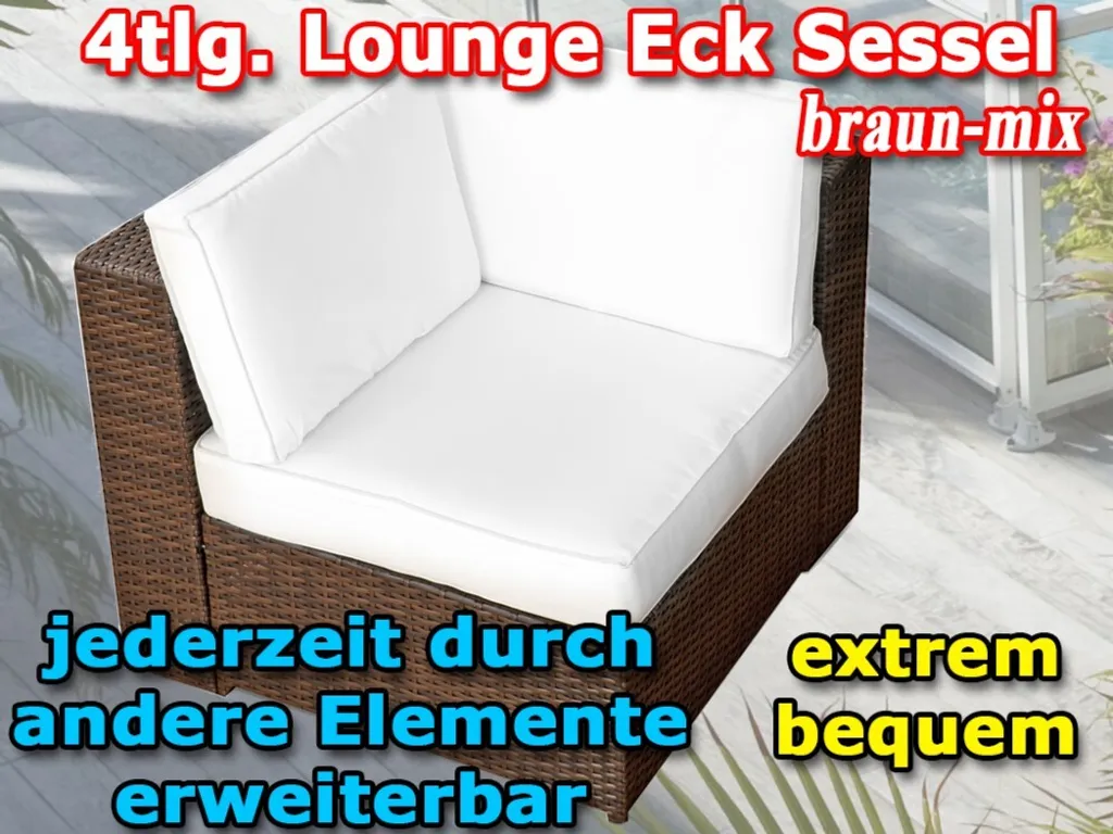 4tlg. (1er) Gartenmöbel Polyrattan Lounge Ecksessel – Braun-mix