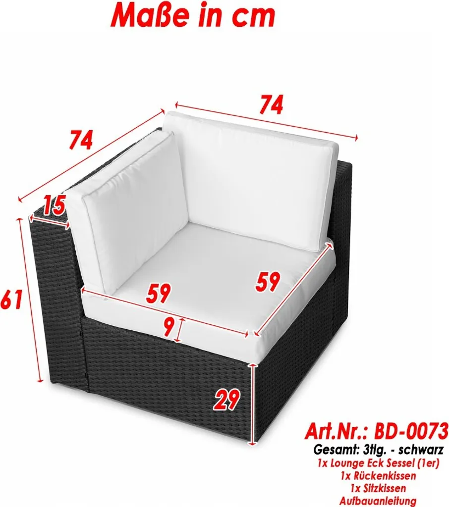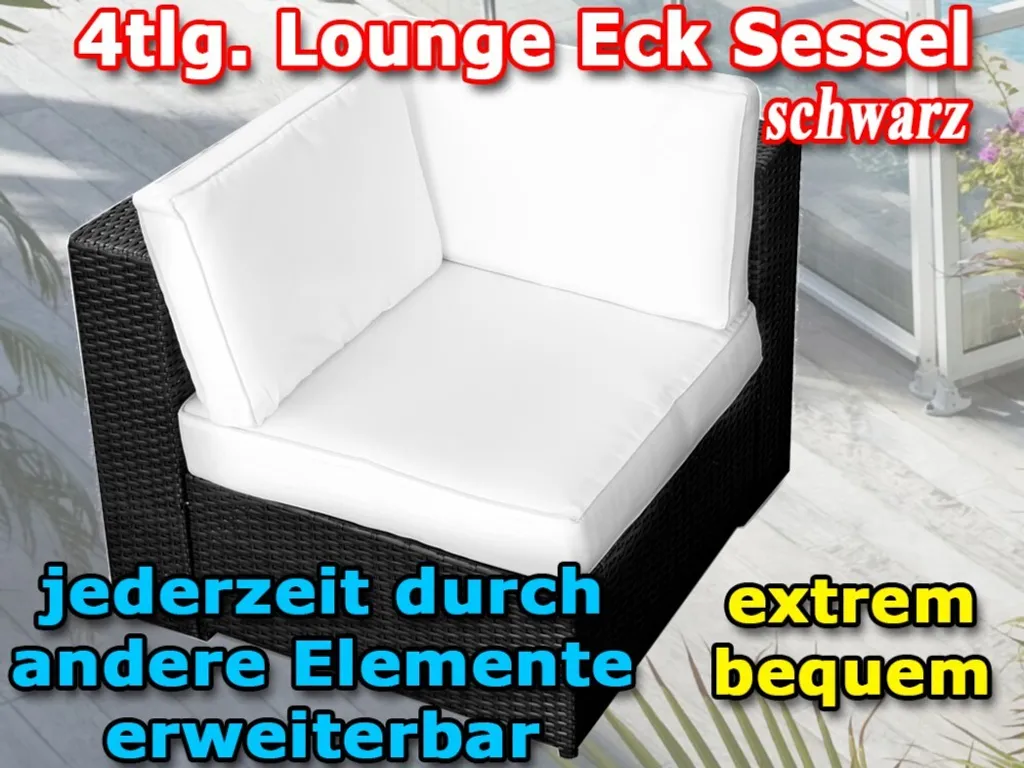4tlg. (1er) Polyrattan Lounge Eck Sessel (1er) Gartenmöbel – Anthrazit