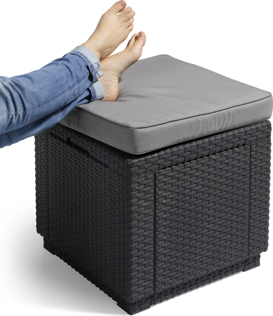 Allibert Cube Sitzhocker H 39 X B 42 X T 42 Cm, Mit Stauraum, Graphitgrau