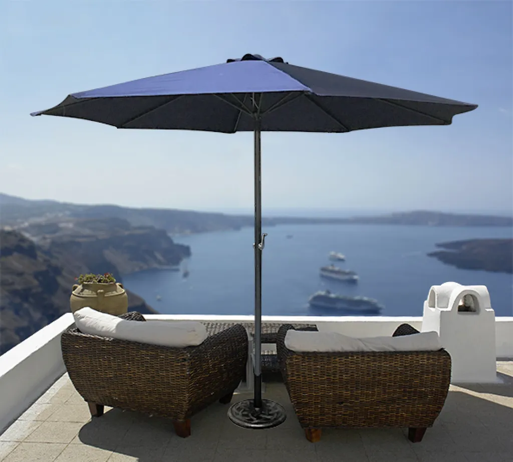 ALU Landhausschirn Sonnenschirm 300cm Mit Kurbel UV 50+ Blau 62428