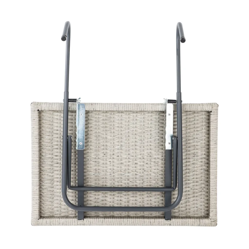 | Zusätzliche Varianten | Balkon Hängetisch – RATTAN – klappbar, Balkontisch VENTANA in Rattan Optik, Balkontisch VENTANA mit Rattan Optik – eckig – Universal Balkon Hängetisch höhenverstellbar und klappbar |
