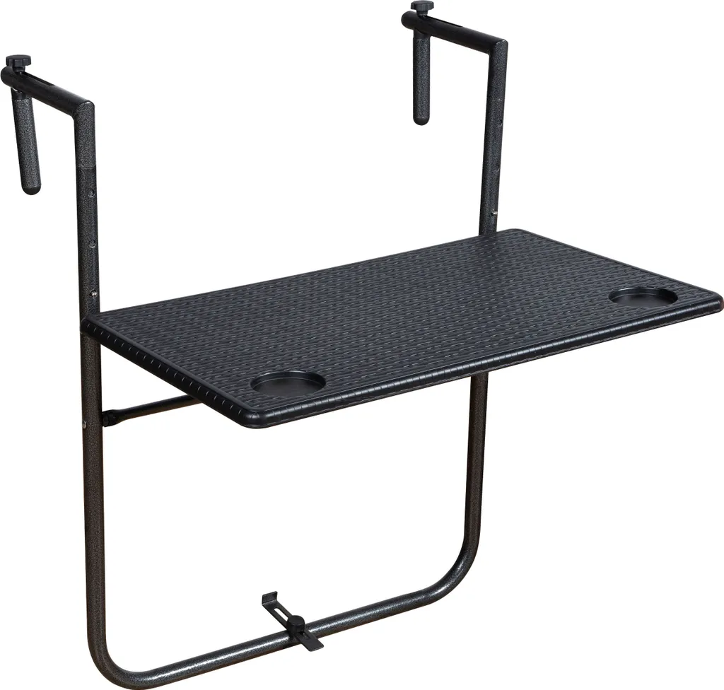 Balkontisch VENTANA Mit Rattan Optik – Eckig – Universal Balkon Hängetisch Höhenverstellbar Und Klappbar