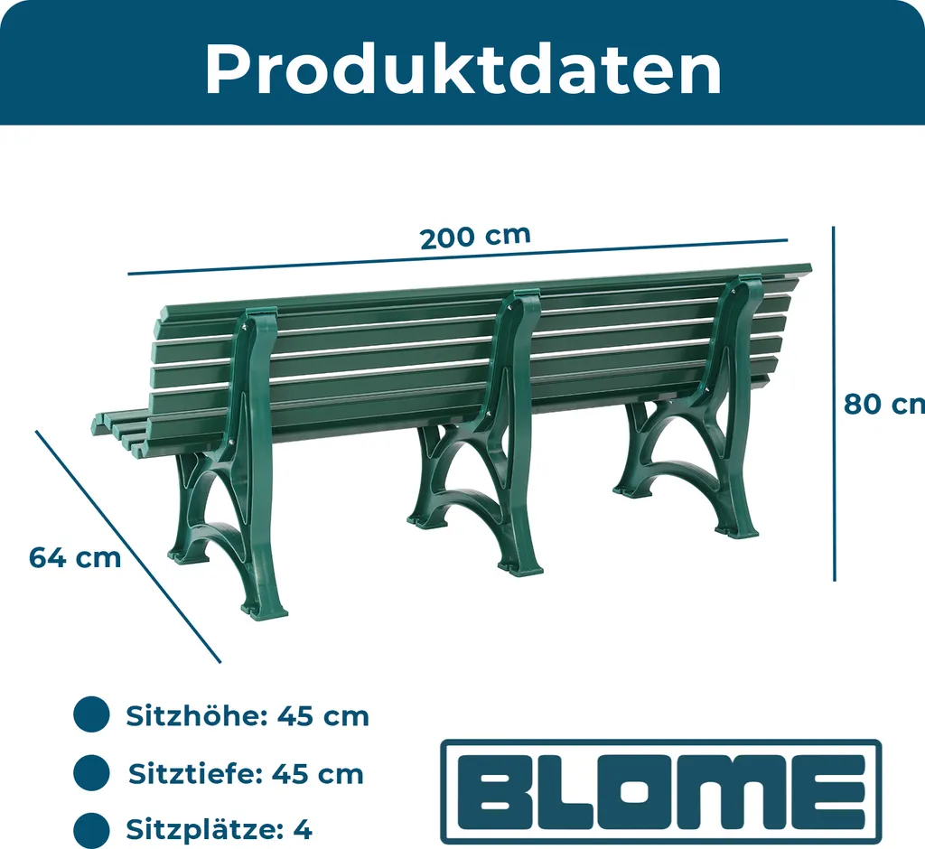 BLOME Sitzbank Borkum – Gartenbank Für Garten, Balkon, Terrasse, Parkbank In Moosgrün, 4-Sitzer, Germany