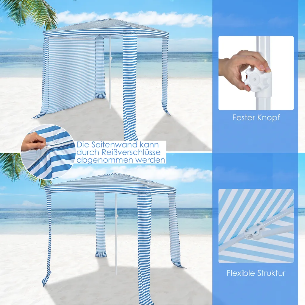 COSTWAY 204x207cm Strandschirm Mit Seitenwand Sonnenschirm Inkl. Tragetasche & 4 Sandsäcke Strandzelt Strandmuschel Sonnenschutz Hellblau