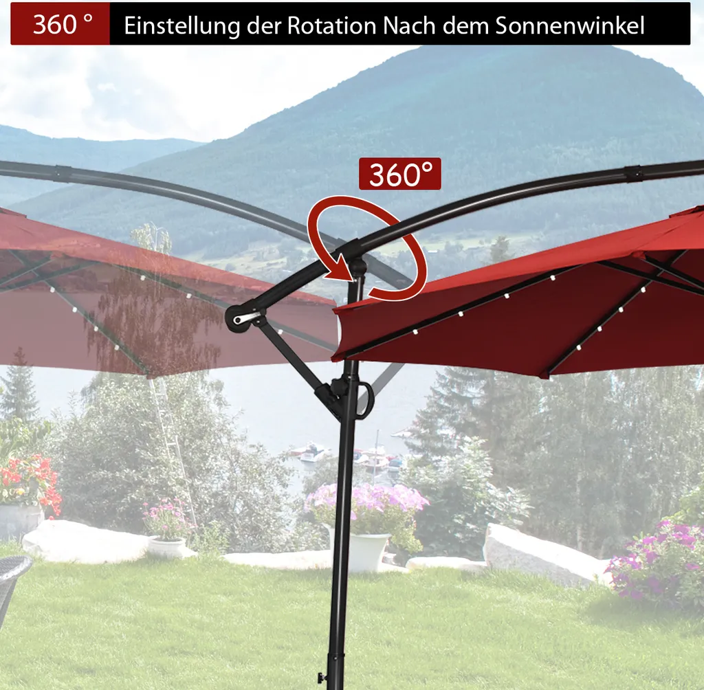 COSTWAY 300cm Sonnenschirm Mit LED-Solar-Beleuchtung, 360° Drehbar Ampelschirm Neigbar Mit Kurbel & Kreuzfuß, Terrassenschirm Gartenschirm LED Schirm Für Garten, Terrasse, Pool, Balkon