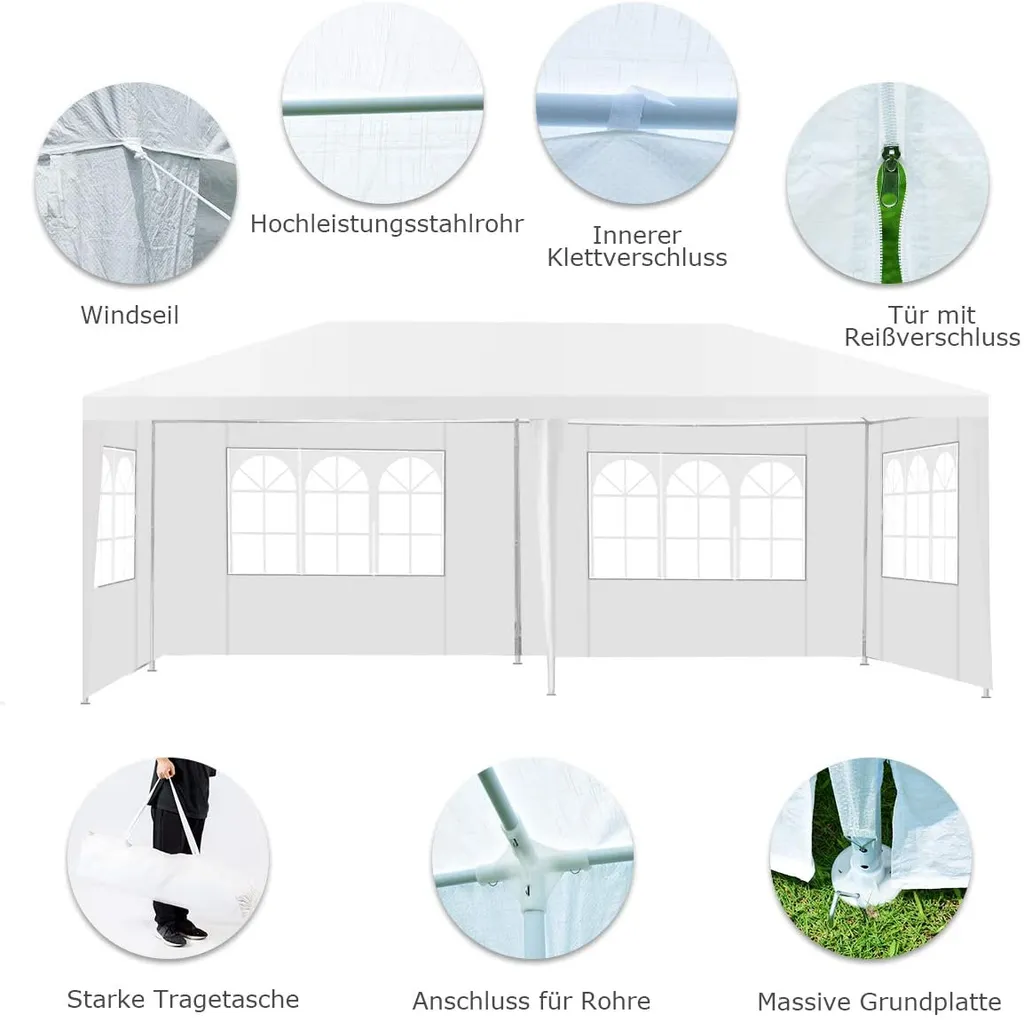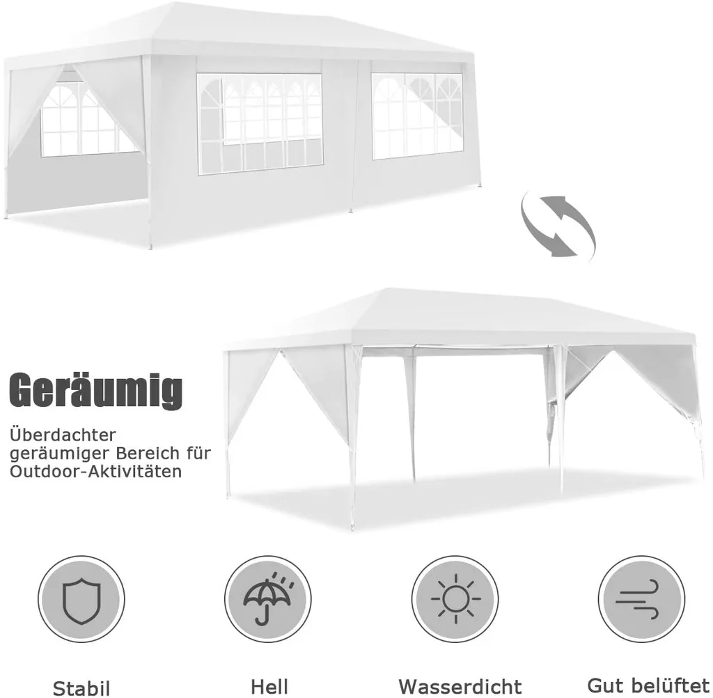 COSTWAY 3x6m Gartenpavillon UV-Schutz, Partyzelt Mit 4 Abnehmbaren Seitenwänden, Faltbar, Inkl. Tragetasche