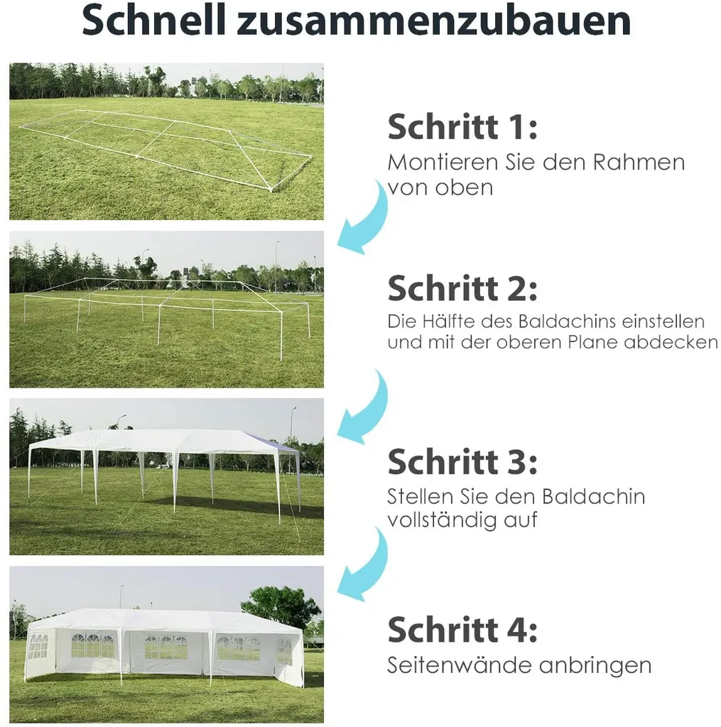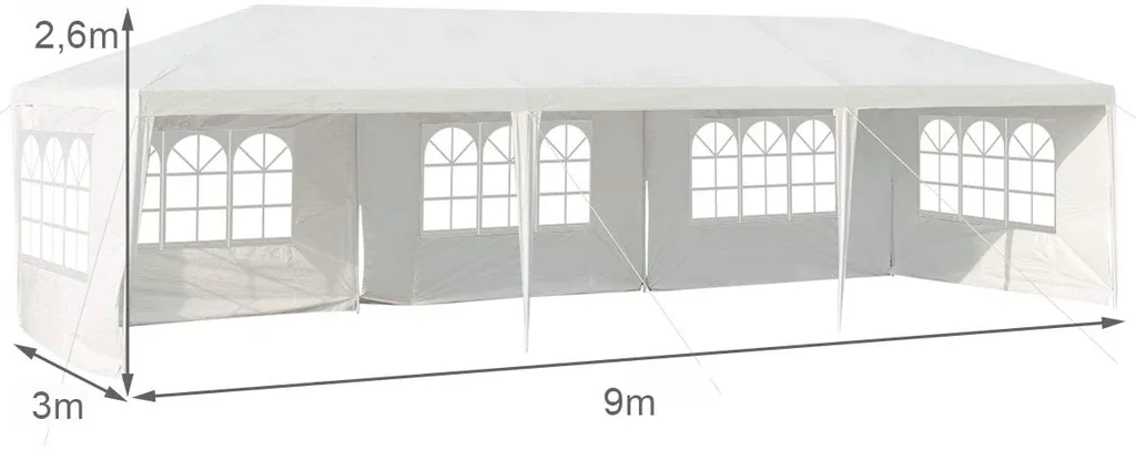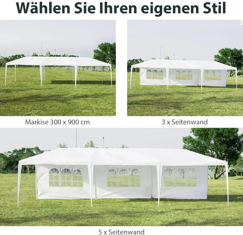 COSTWAY 3x9m Gartenpavillon Partyzelt Mit 5 Abnehmbaren Seitenwände Bierzelt UV Schutz Gartenzelt Faltpavillon Weiß