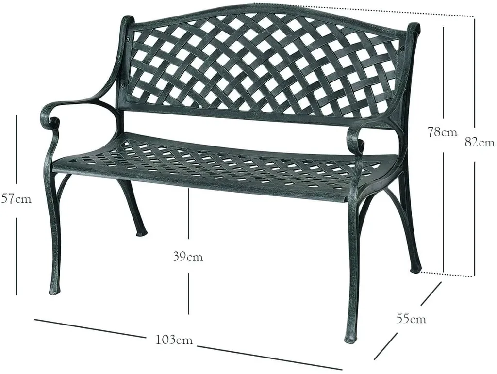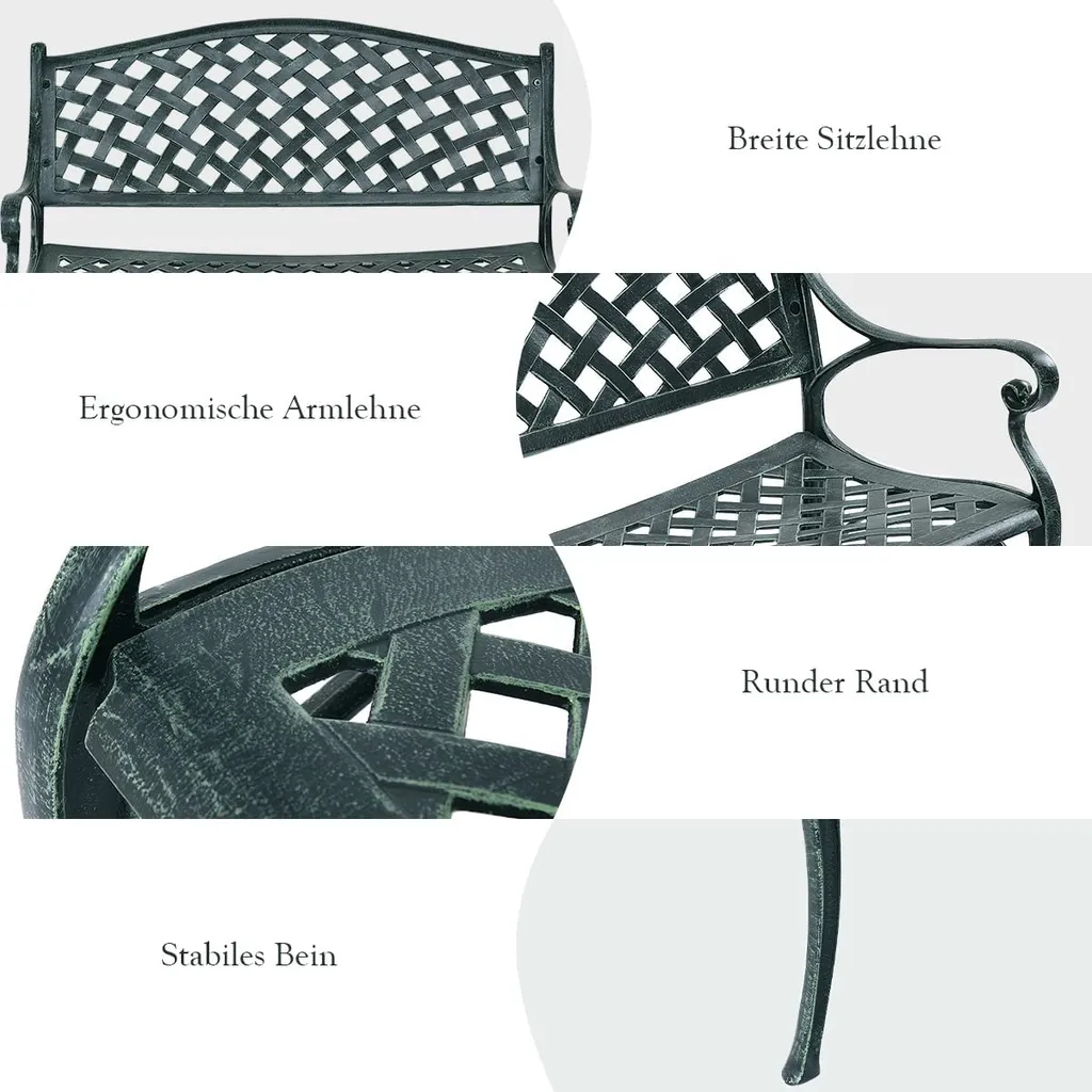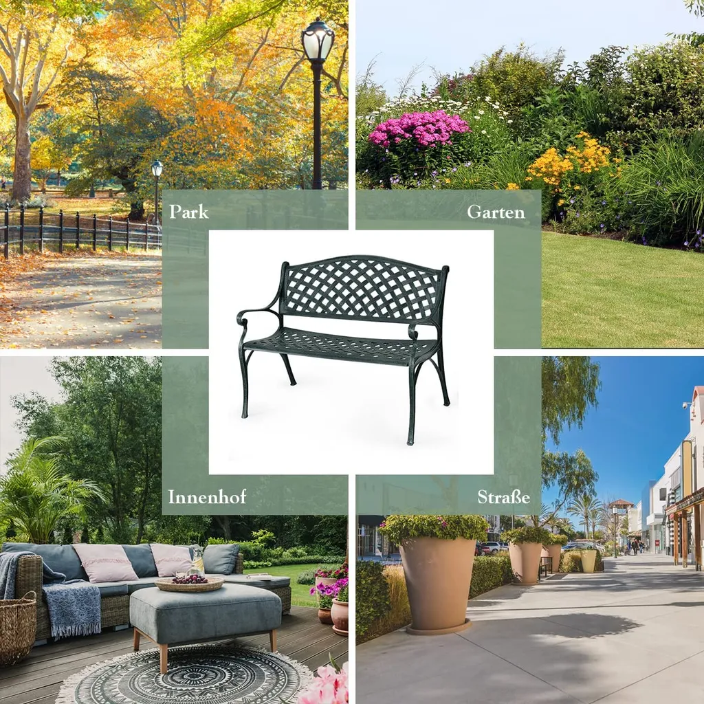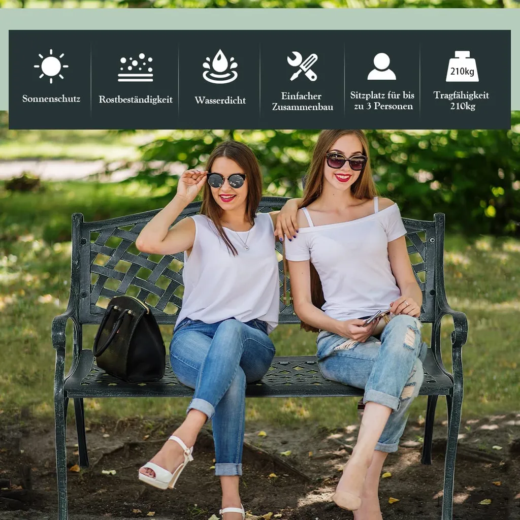 COSTWAY Gartenbank Parkbank Gusseisen, Eisenbank Belastbar Bis 210kg, Ruhebank Gartenmöbel, Sitzbank Stahlrahmen, Metallbank Mit Rückenlehnen 102x62x83cm