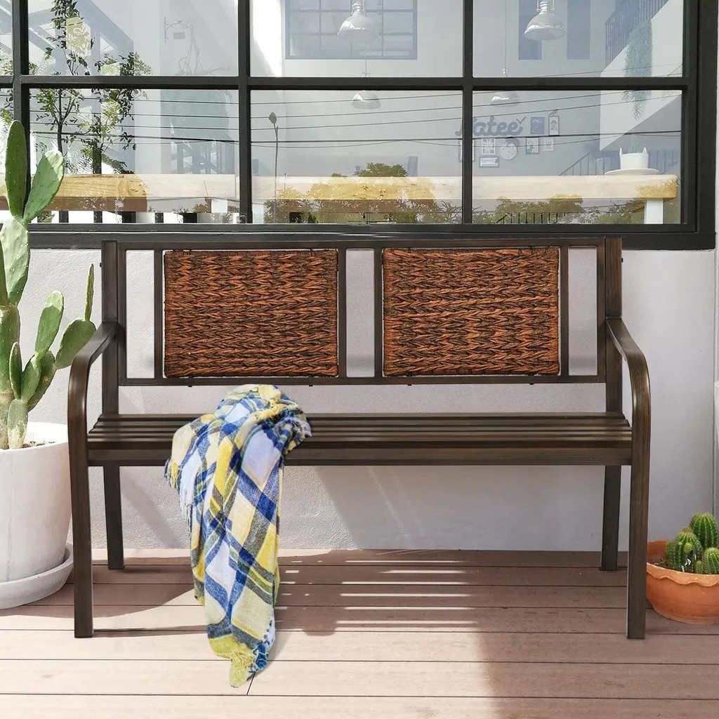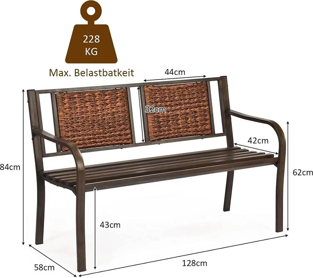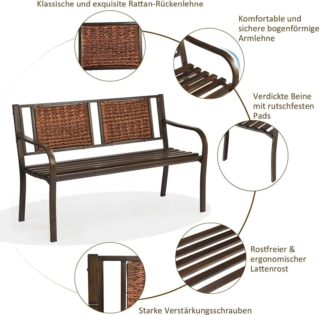 COSTWAY Gartenbank Parkbank Mit Rattan Rückenlehne & Geschwungener Armlehne 228kg Brlastbar
