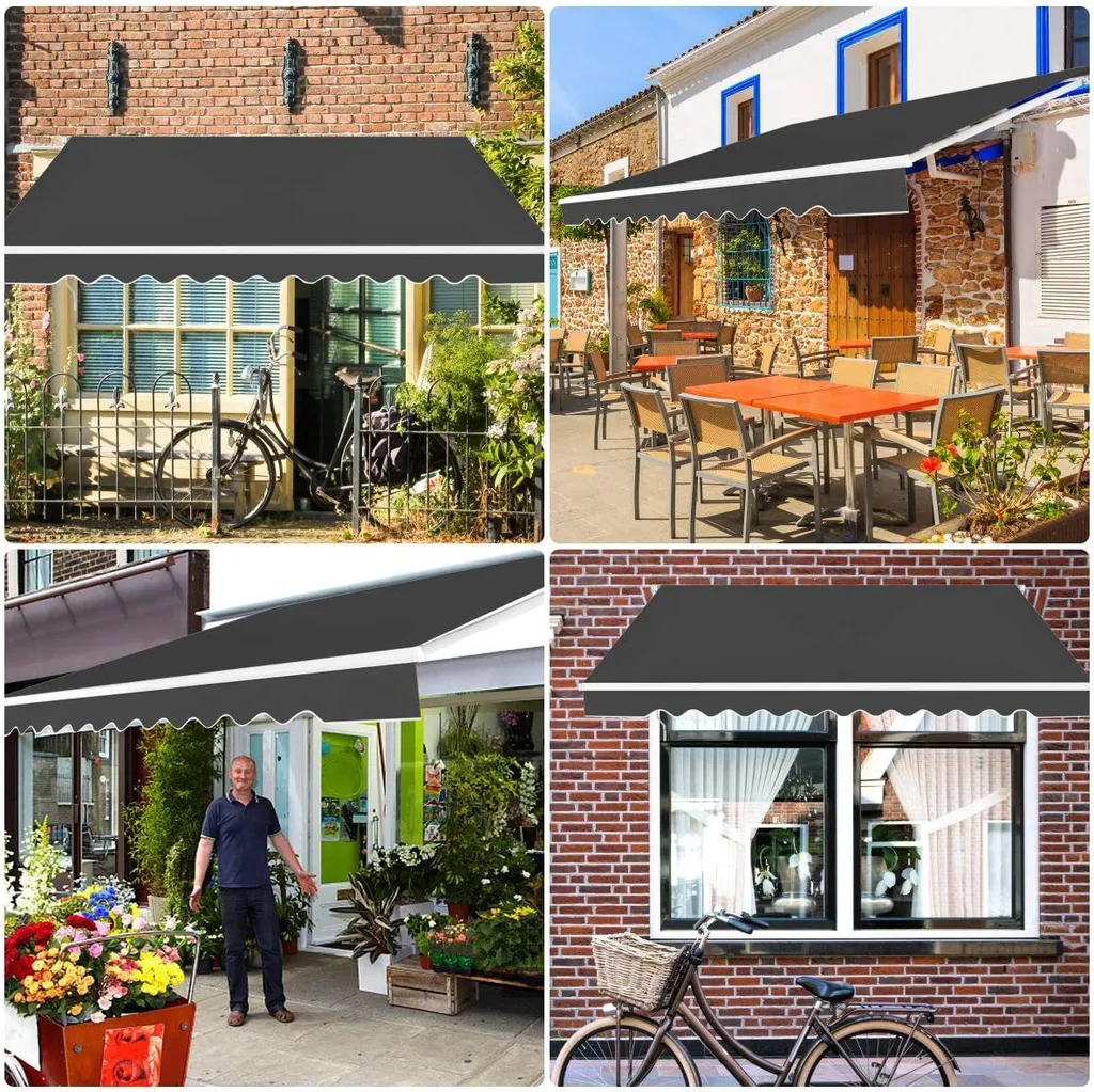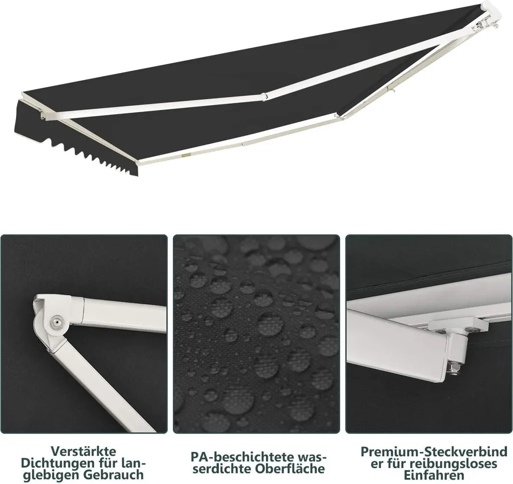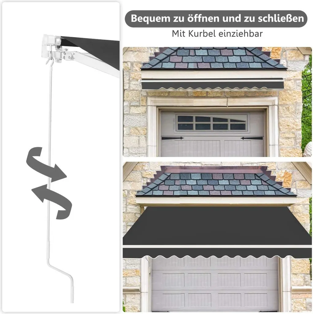 COSTWAY Markise Mit Kurbel Klemmmarkise Gelenkarmmarkise Sonnenmarkise Terrassenmarkise Sonnenschutz 250x200cm Grau