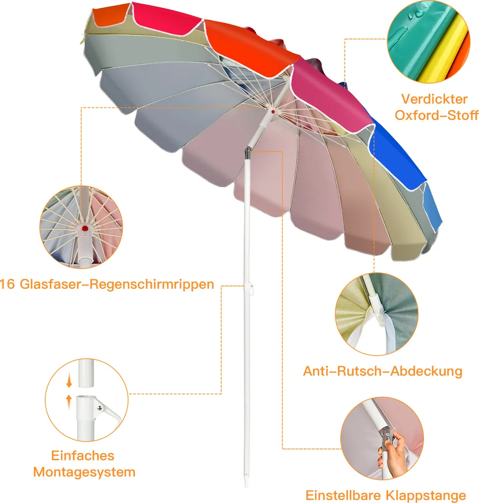 COSTWAY Sonnenschirm Strandschirm Marktschirm Gartenschirm Neigbar Terrassenschirm Mit Verankerung Für Garten, Strand, Outdoor