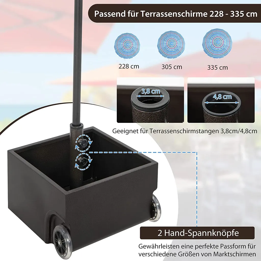 COSTWAY Sonnenschirmständer Mit Rollen, 77kg Sonnenschirm Ständer Für Schirmstangen 38/48 Mm, Schirmständer Befüllbar Mit Sand, Pflanzgefäß Mit Ablaufloch Für Terrasse, Garten