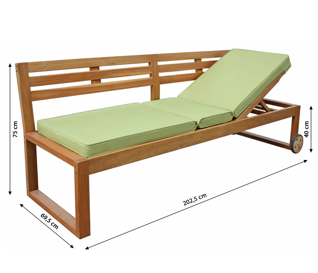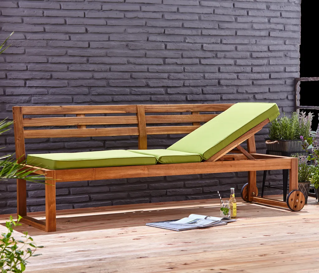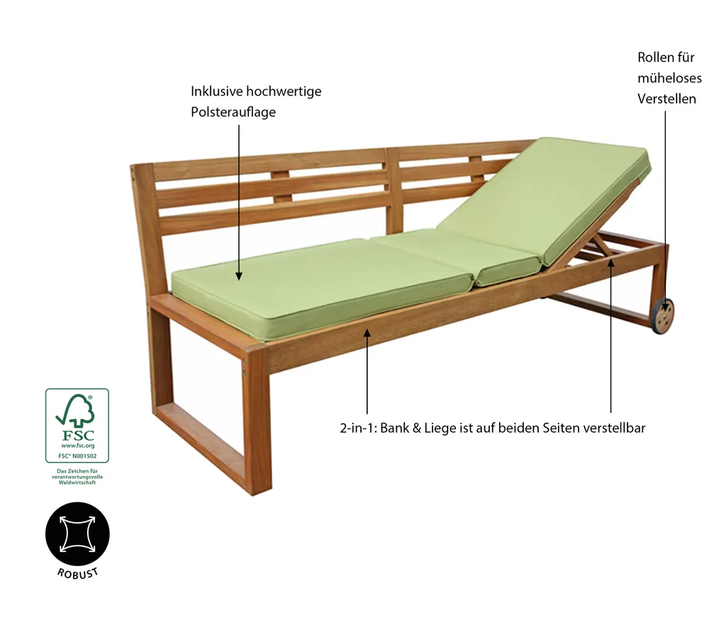 Dehner Funktionsbank/-liege Rio, Ca. 202.5 X 75 X 69.5 Cm, Inkl. Polster, FSC® Akazienholz, Natur
