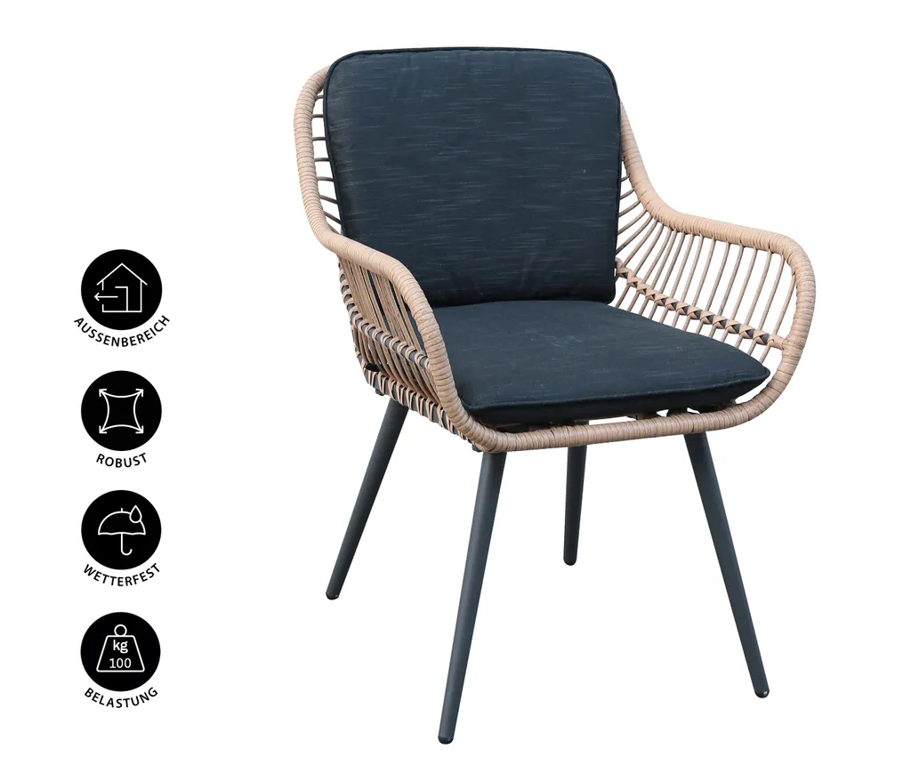 Dehner Gartenstuhl Venezia, Inkl. Polster, 80 X 61 X 67 Cm, Aluminium/Polyester, Hellbraun/dunkelgrau/schwarz