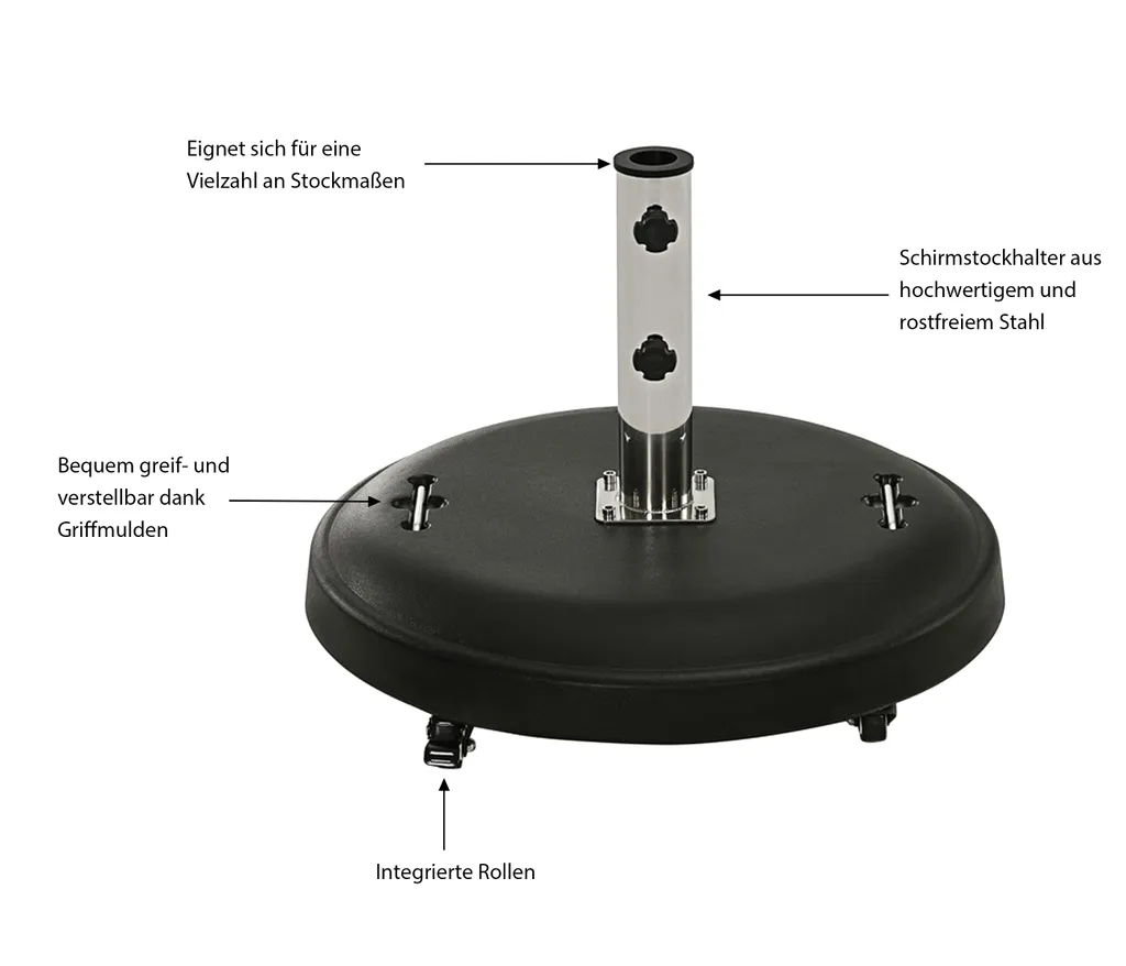 Dehner Sonnenschirmständer, Rollbar, Ø Schirmstock 58 Mm, Beton/Stahl, 50 Kg, Schwarz