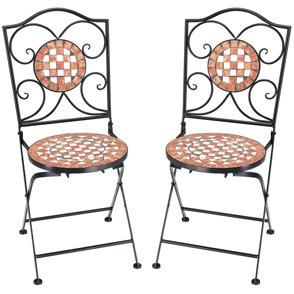 Deuba Mosaikstühle 2er Set Metall Sitzhöhe 45cm Klappbar Garten Balkon Terrasse Stuhl Gartenstuhl Gartenmöbel Klappstuhl Stühle