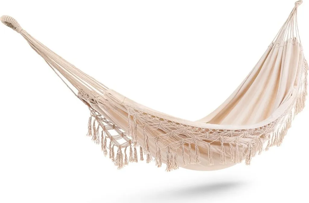 Di Volio Brasilianische Premium Hängematte BARI Mit Fransen Im Boho-Look – Hängeliege Für Zwei Personen 200 X 150 Cm (weiß)