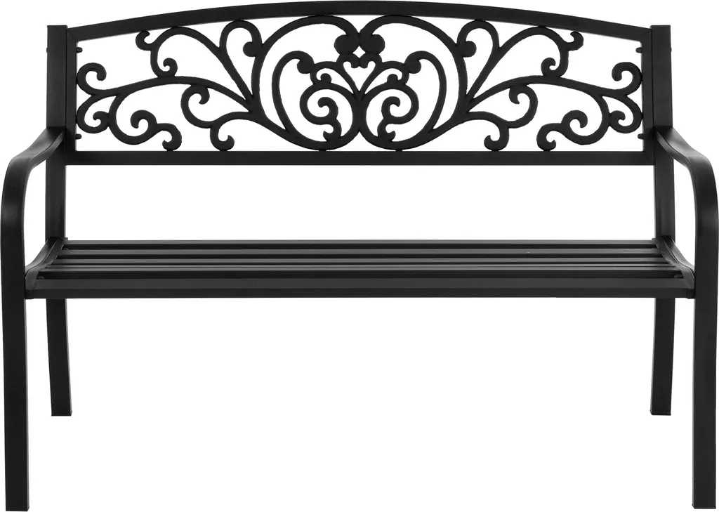 ECD Germany Gartenbank Mit Armlehnen & Rückenlehne Mit Muster, Schwarz, Aus Stahl Und Gusseisen, Wetterfeste Terrassenbank, Metallbank Für Garten Terrasse