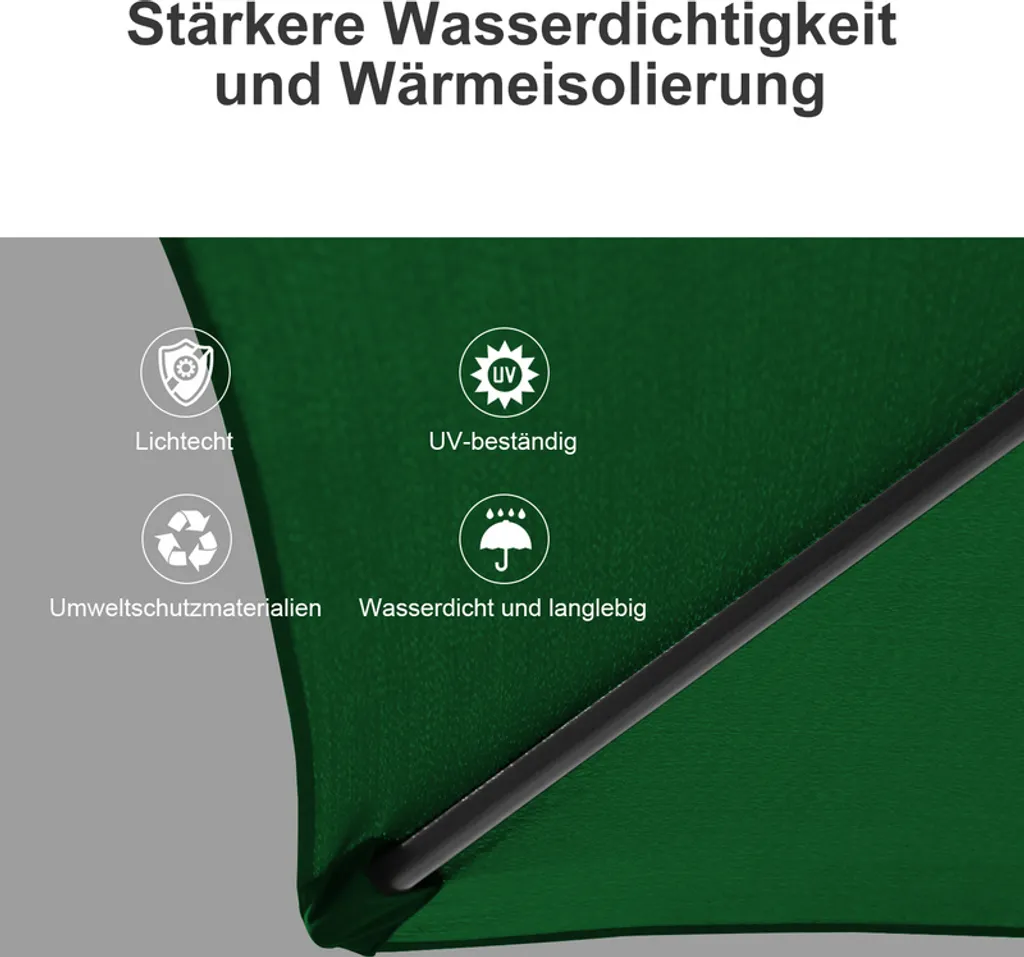 | Zusätzliche Varianten | EINFEBEN 3.5m Sonnenschirm Marktschirm mit Handkurbel UV40+ Outdoor-Schirm Terrassen Gartenschirm,Gruen, EINFEBEN 3.5m Sonnenschirm Marktschirm mit Handkurbel UV40+ Outdoor-Schirm Terrassen Gartenschirm,Gruen |