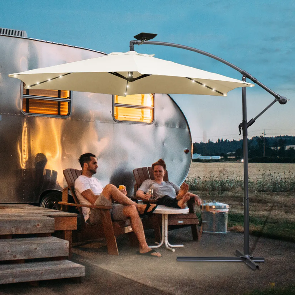 EINFEBEN 3m Sonnenschirm Mit LED Solar Ampelschirm Balkonschirm Marktschirm UV40+ Gartenschirm,Beige