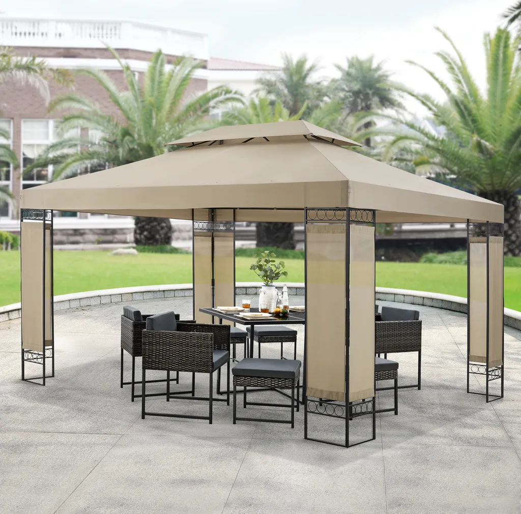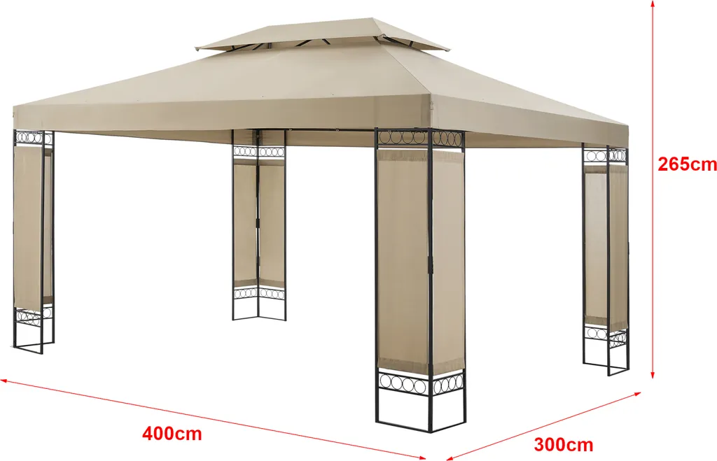 Festzelt Lanciano Pavillon Für Terrasse Oder Garten 400x300x265 Cm Anstellpavillon Gartenpavillon Sonnenschutz Mit Doppeldach Stahl Stahlgestell Beige