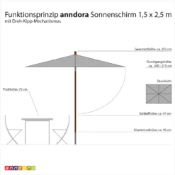 Anndora Sonnenschirm 2,5m Rund Natural Winddach UV-Schutz – Natural