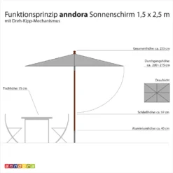 Anndora Sonnenschirm 2,5×1,5m EckigKnickbar Hellgrau – Hellgrau