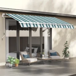 Outsunny Markise Gelenkarmmarkise Sonnenschutz Handkurbel Balkon Alu Gelb+Grau 3,5×2,5m