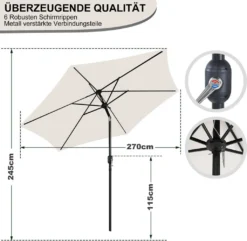 EINFEBEN 3m Sonnenschirm Sonnenschirme Ampelschirm Gartenschirm Terrassen UV40+ Marktschirm,Beige,3m