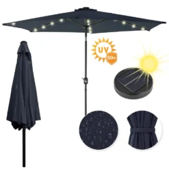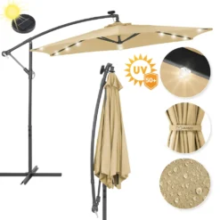 EINFEBEN 3m Sonnenschirm Mit LED Solar Ampelschirm Balkonschirm Marktschirm UV40+ Gartenschirm,Beige