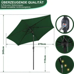 Luxus Sonnenschirm Mit LED Beleuchtung Ampelschirm 350 Cm Garten Schirm Pavillon – Creme