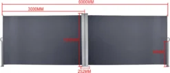Lospitch Doppel Seitenmarkise Markisen Wandmarkise 180x600cm Ausziehbar Garten Sichtschutz Grau
