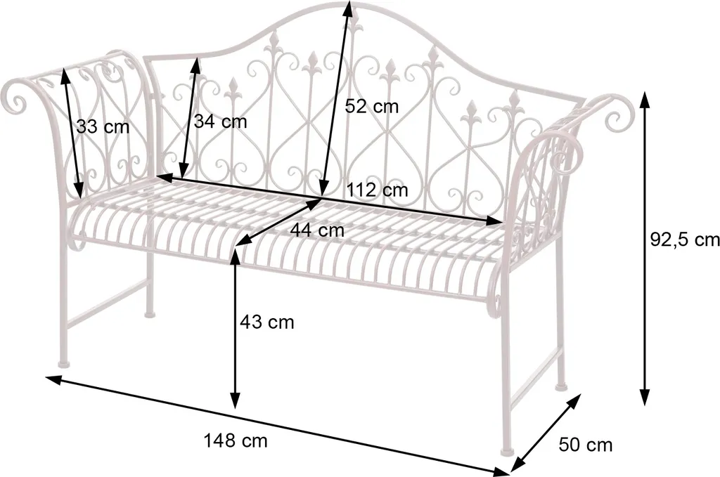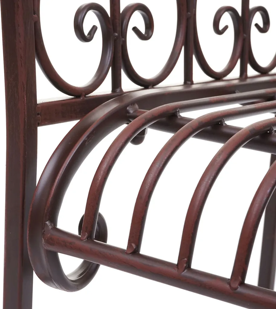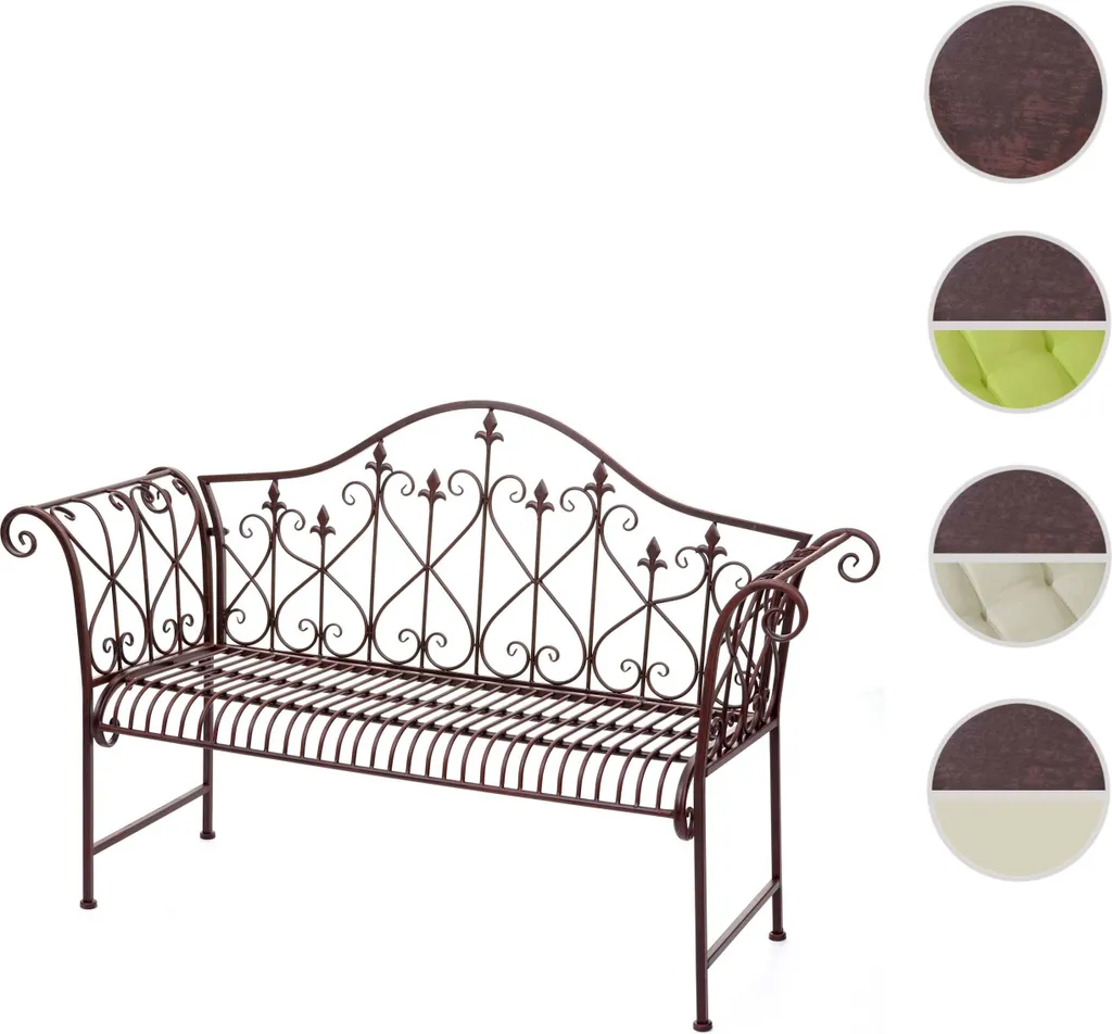 Gartenbank HWC-H78, Parkbank Sitzbank, 2-Sitzer Metall Mit Verzierungen Rost-Optik Braun 150cm Ohne Sitzkissen