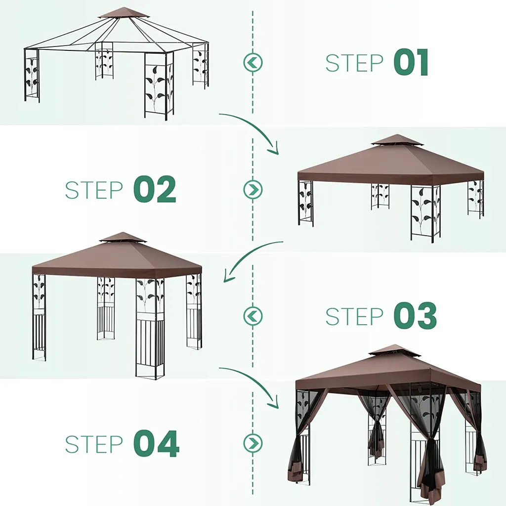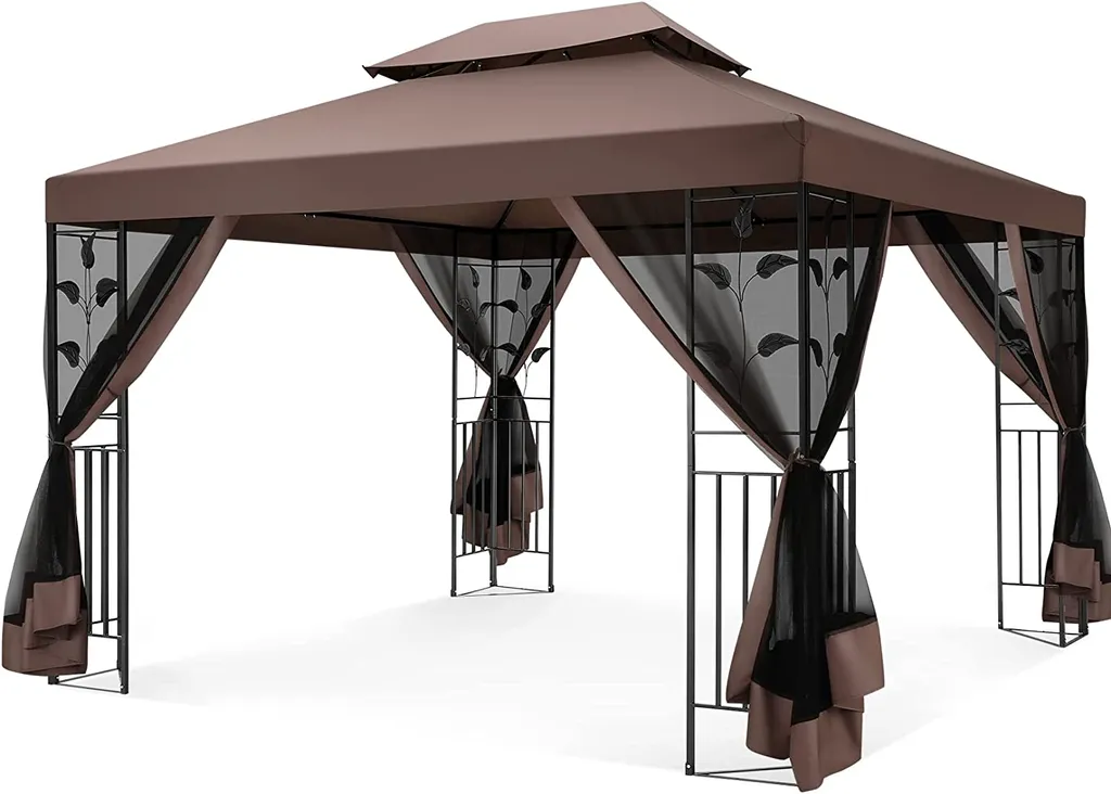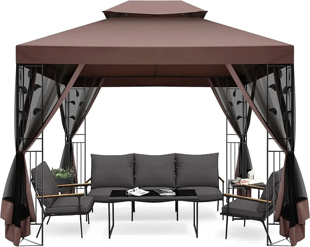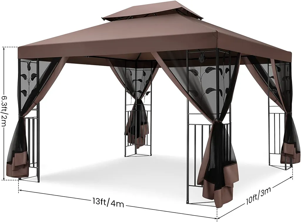 Gartenpavillon Faltpavillon 3 X 4 M, Terrassenpavillon Überdachung Mit Seitenwänden & Doppeldach, Zelte Für Schutz Vor Sonne Und Regen, Abgeschirmter Pavillon Für Party Hinterhof, Braun