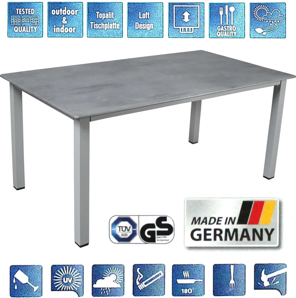 Gartentisch / Lofttisch MFG 160x90cm Alu Graphit / Topalit Betonoptik