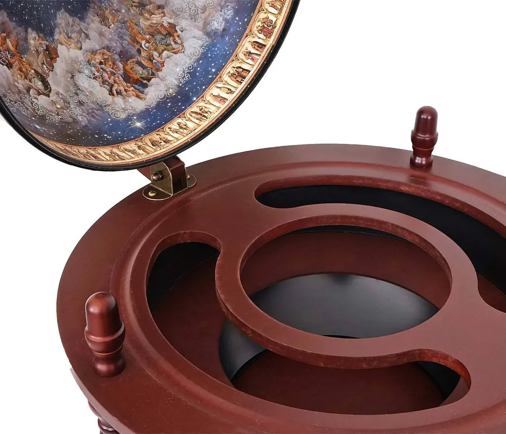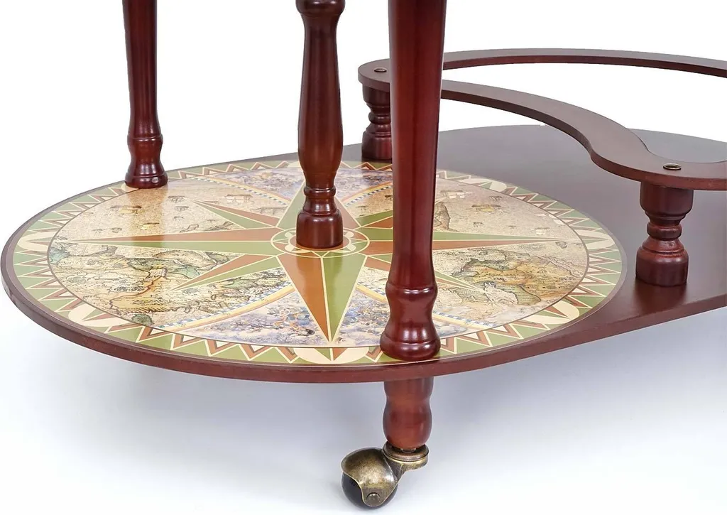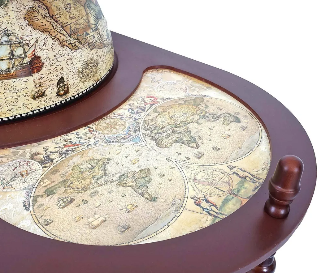 Globusbar Mit Tisch MCW-D84, Minibar Hausbar Tischbar, Weltkugel Ø 42cm Rollbar Eukalyptusholz