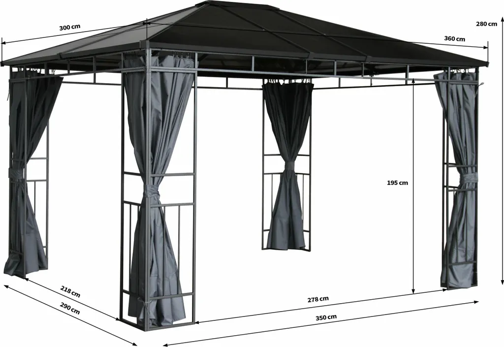 Grasekamp Hardtop Pavillon Limone 3×3,6m Inkl. Seitenteile – Doppelstegplatten Hohlkammer Polycarbonat