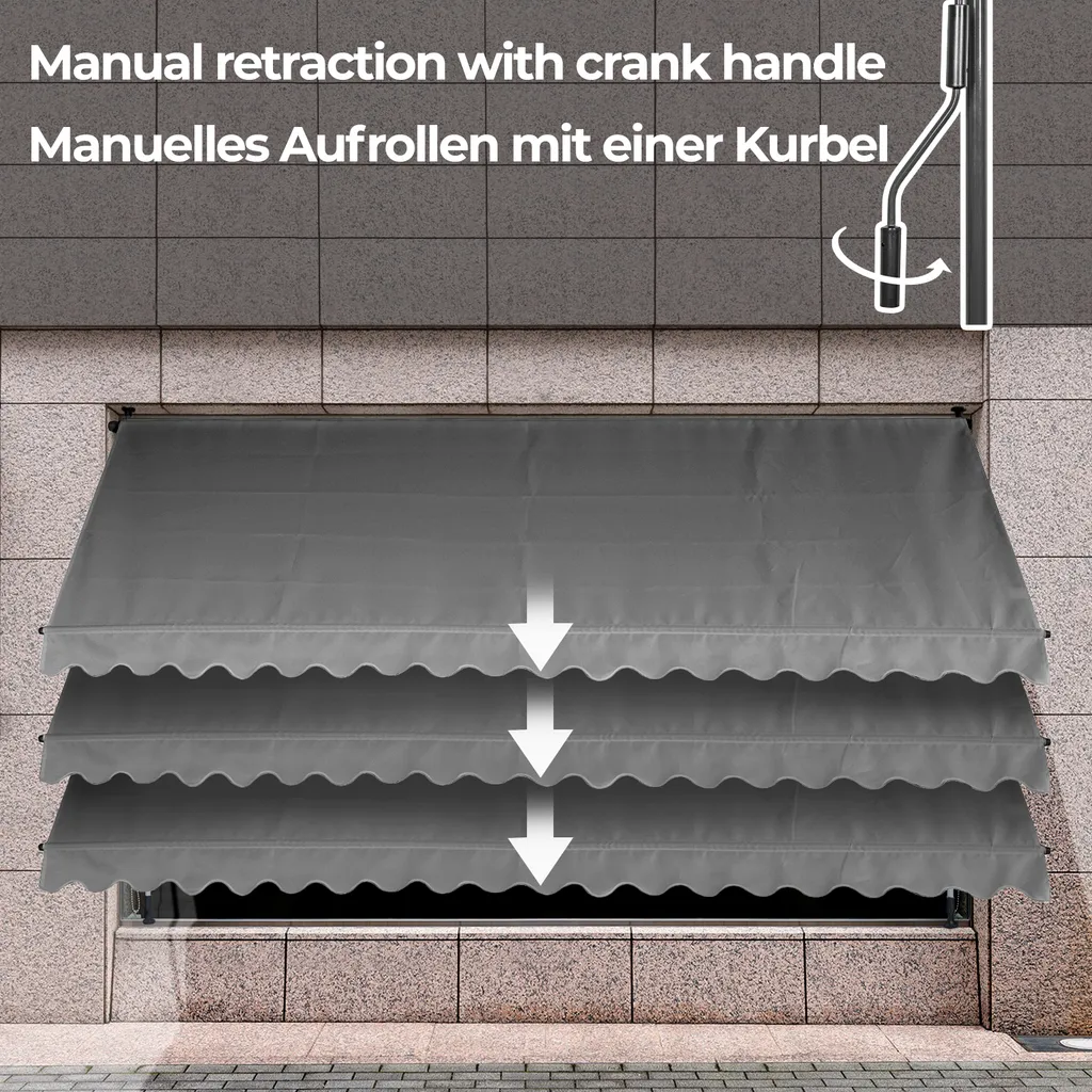 Jago® Klemmmarkise – 300/350/400x80cm, Höhenverstellbar, Kurbel, Wasserabweisend, UV-Schutz, Terrasse, Sonnenschutz, Farbwahl – Balkon, Sonnenmarkise, Terrassenmarkise (350 X 80 Cm, Anthrazit)