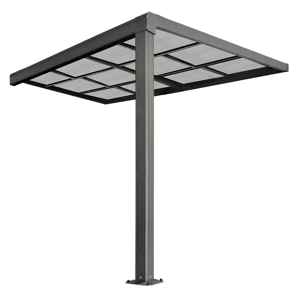 Juskys Terrassenüberdachung 7×3 M Mit Schiebedach – Terrassendach Aus Aluminium Mit Doppelstegplatten – Wetterfeste Überdachung Mit UV-Schutz – Grau