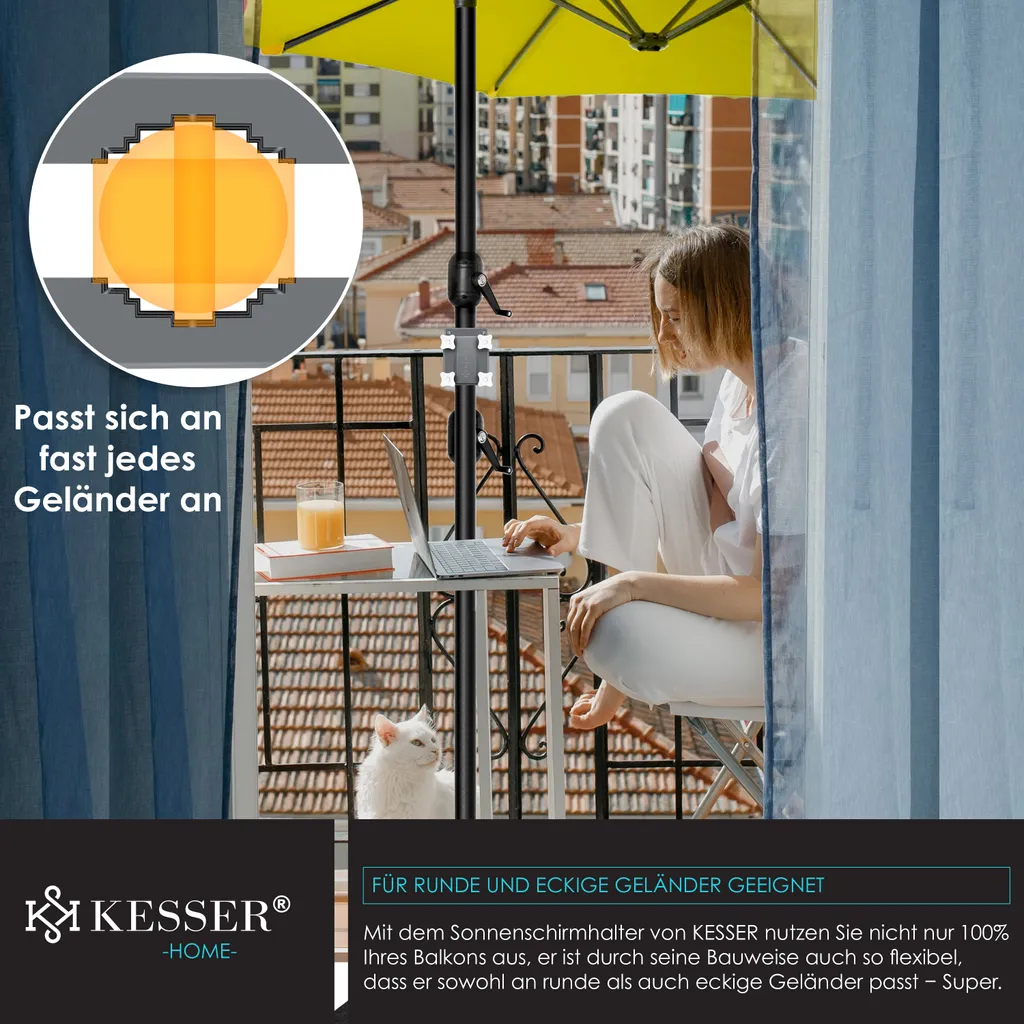 KESSER® Premium Sonnenschirmhalter Universal Balkongeländer – Schirmständer Für Eckige Und Runde Schirme | Balkon Terrasse Sonnenschirm Halterung Hohe Flexibilität | Starke Klemmkraft, Farbe:Anthrazit / Grau