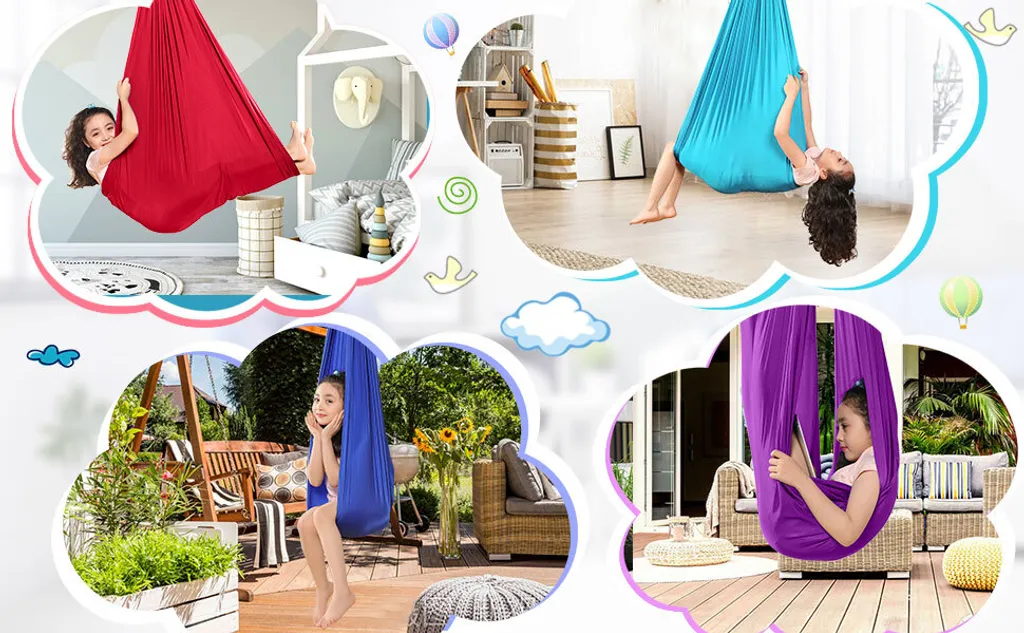 Kinder Schwingen Hängematte, Indoor Schaukel Elastisch Cuddle Hammock Sensory Swing Ideal Für ADHS, Asperger Und Sensorische Integration Sowie Autismustherapie(Blau,150 X 280CM)