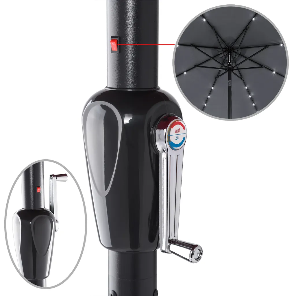 Kingsleeve Sonnenschirm LED Beleuchtung 270 Cm Groß Rund Solar Alu Knickbar Stabil Marktschirm Gartenschirm Terrassenschirm Garten Terrasse Balkon, Farbe:anthrazit