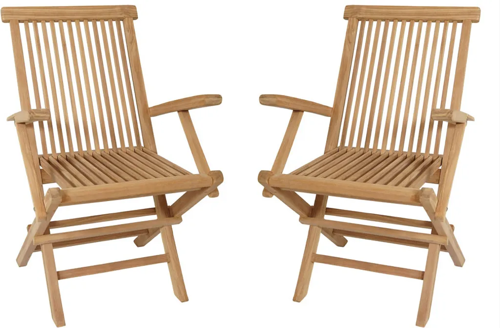 KMH® 2er SET TEAK Klappstühle Mit Armlehnen