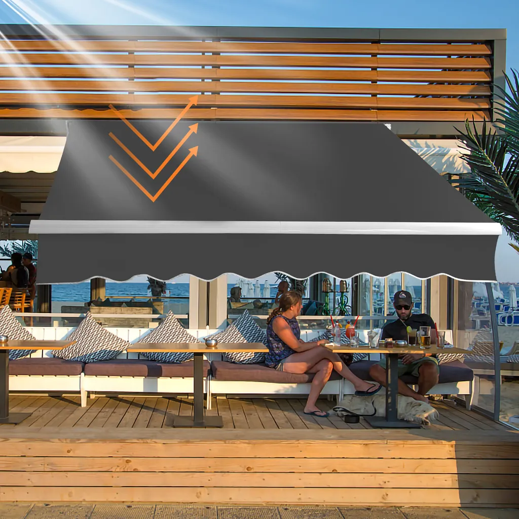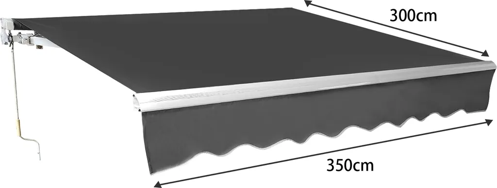 Lospitch Sonnenmarkise Manuelle Gelenkarmmarkise Markise Sonnenschutz, 3,5 X 3 M Alu/Polyester Anti-UV Und Wasserfest Terrasse Oder Garten Grau