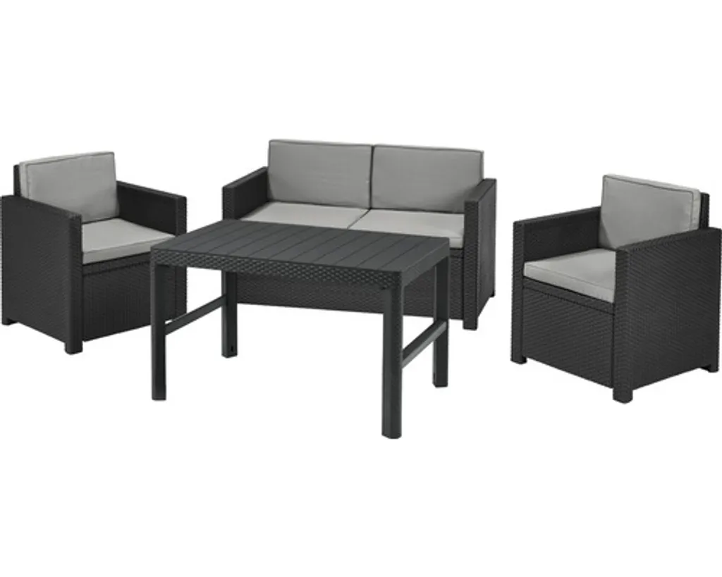 Loungeset Keter Victoria Polyrattan Optik 4-Sitzer 4-teilig Grau Inkl. Polster