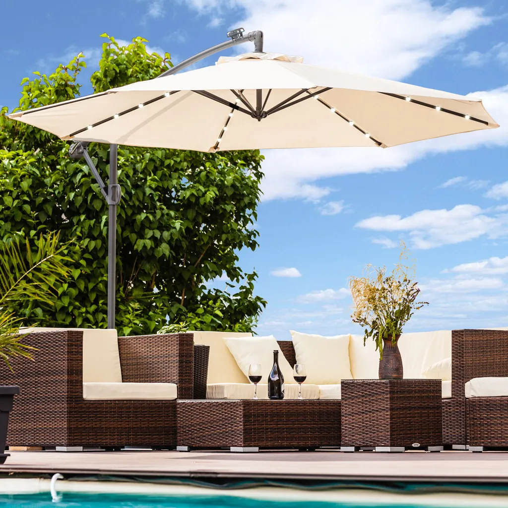 Luxus Sonnenschirm Mit LED Beleuchtung Ampelschirm 350 Cm Garten Schirm Pavillon – Creme