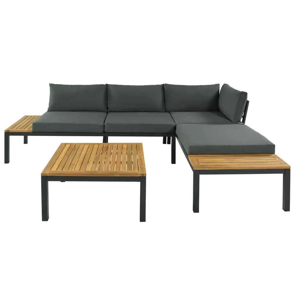 Merax Gartenmöbelset 4-teilig Loungeset Loungegruppe Aus Akazienholz Und Stahlrahmen, Balkonmöbel Set Mit Tisch Und Kissen, 250*172*67cm