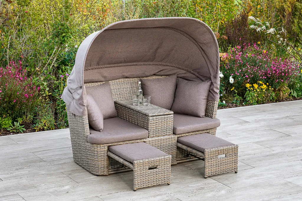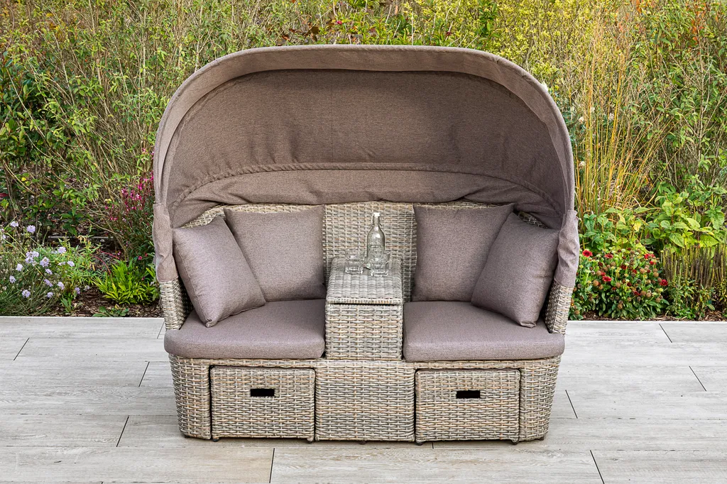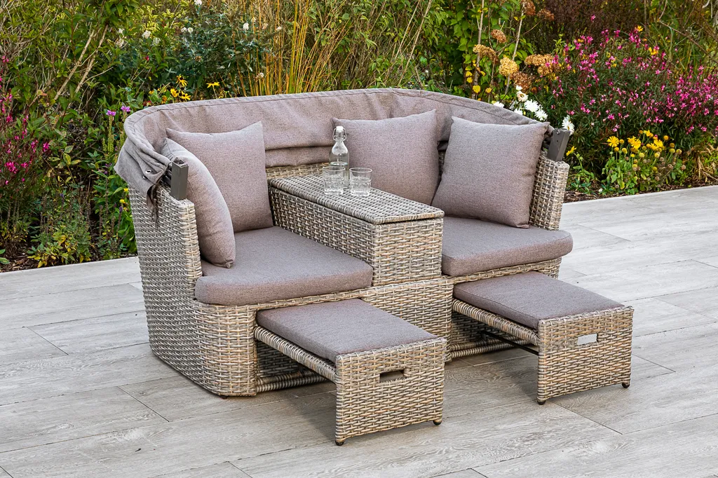 Merxx Funktionsbank „Alamo“ – Stahlgestell Mit Kunststoffgeflecht Steinbeige, Inkl. Kissen
